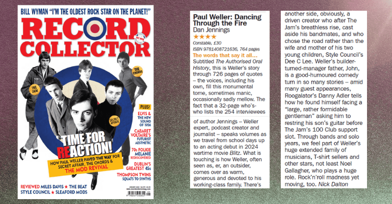 Contact Music – A brilliant feature here by Philip Hamilton for Contact Music, exploring the story behind Dancing Through the Fire and how my dream to meet Paul Weller turned into an authorised oral history.