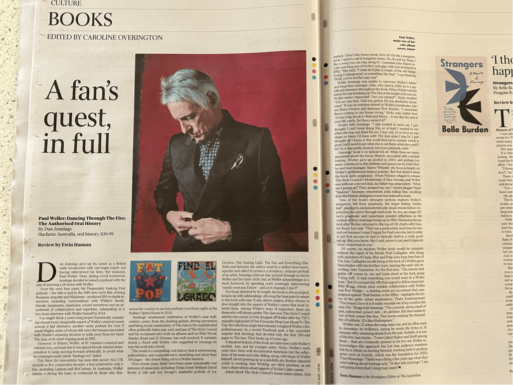 Dave Roberts picked Dancing Through the Fire as one of his books of the year in the round up here. Honourable mentions go to … “Dan Jennings Dancing Through the Fire (Constable) an almost stalkerishy detailed account of Paul Weller‘s career. “